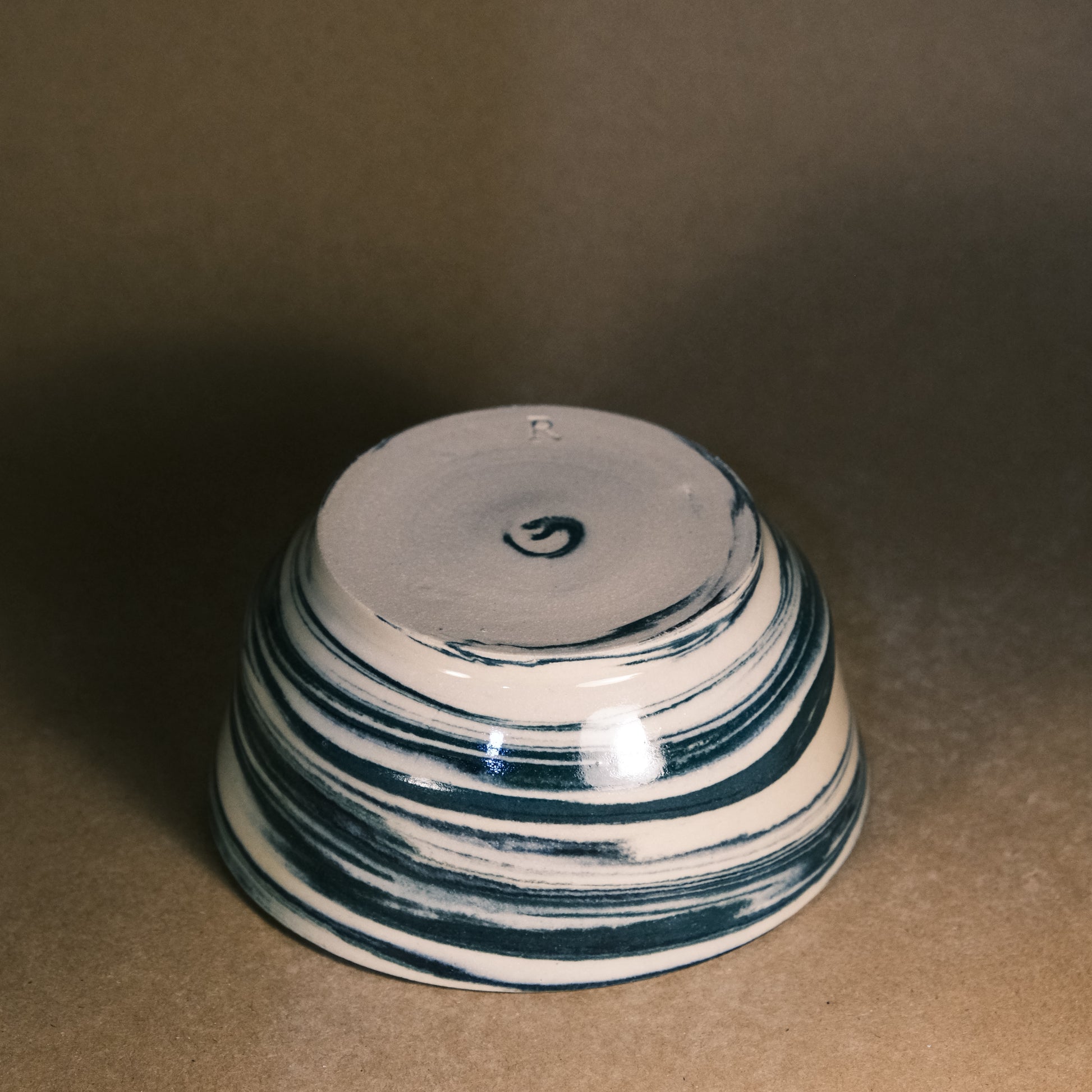 This stoneware bowl is high-fired to 1250°C in an electric kiln. To achieve its unique marble effect, stained clay is wedged together by hand before each piece is individually thrown and turned on the wheel. The pattern on every bowl is unique, determined by the specific wedging process and the ratio of coloured clays used.
