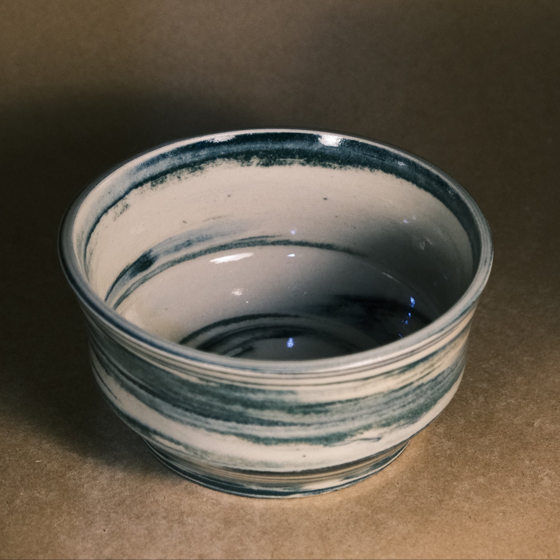 This stoneware bowl is high-fired to 1250°C in an electric kiln. To achieve its unique marble effect, stained clay is wedged together by hand before each piece is individually thrown and turned on the wheel. The pattern on every bowl is unique, determined by the specific wedging process and the ratio of coloured clays used.