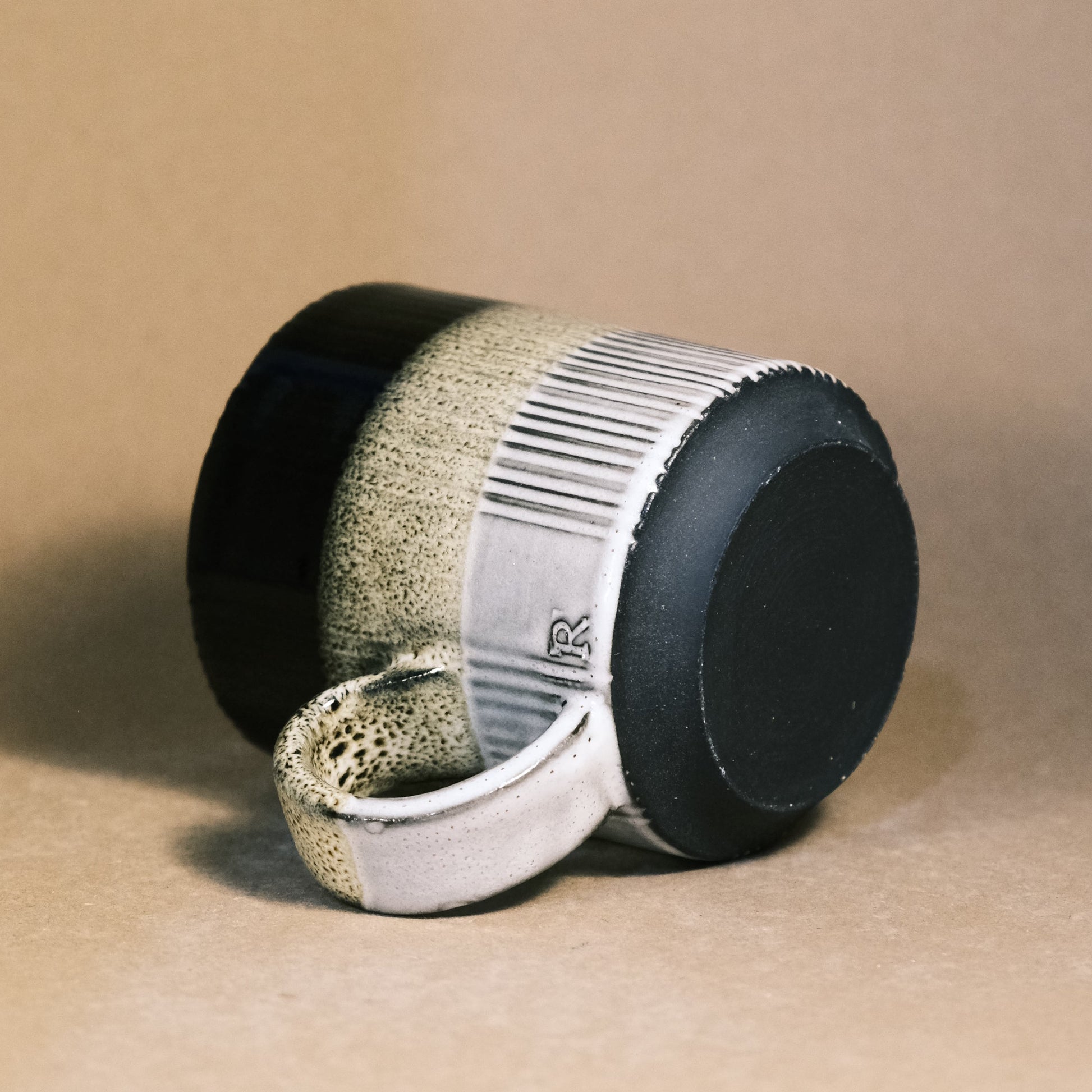 These black stoneware mugs are individually thrown and turned on the wheel, then high-fired to 1220°C in an electric kiln.