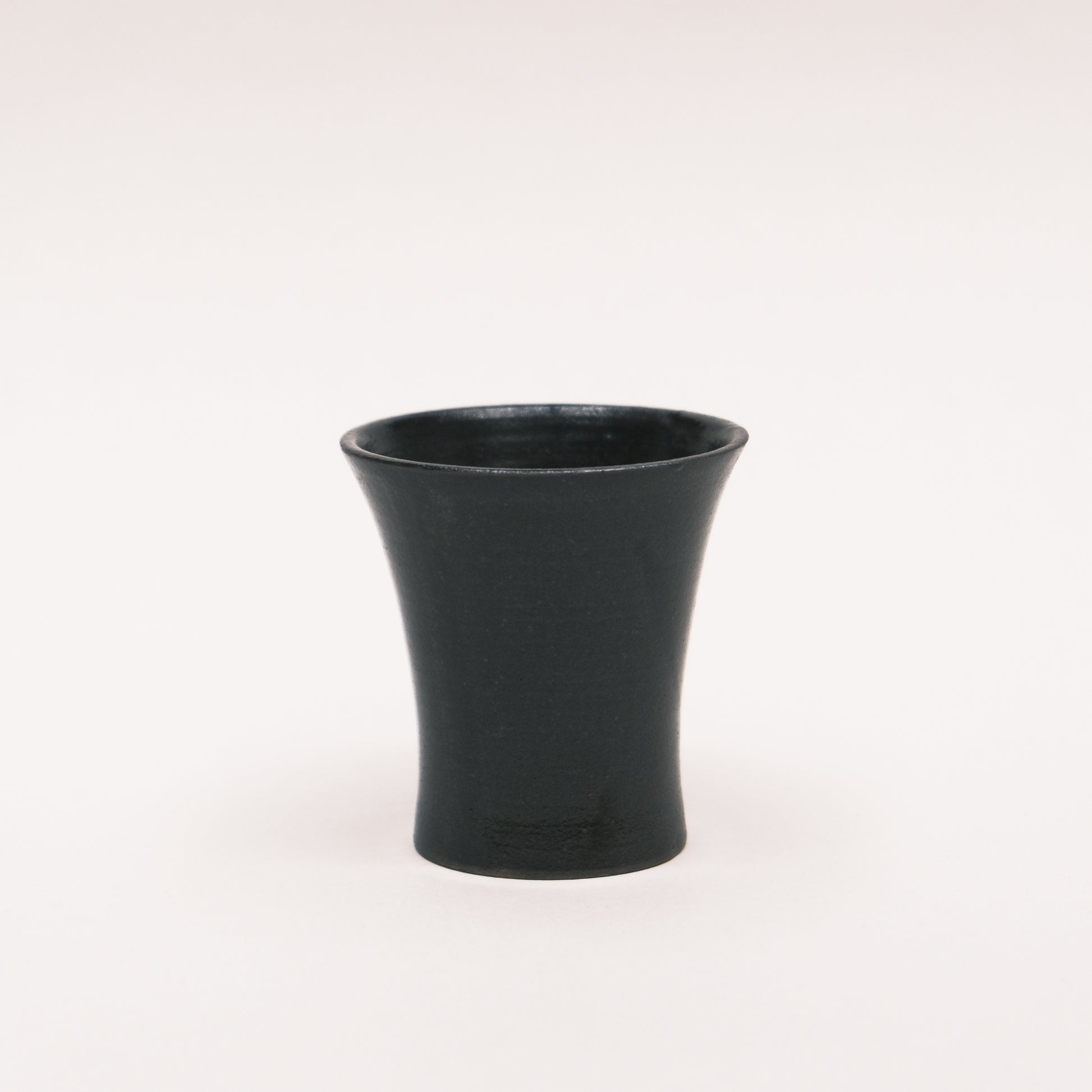 Black glaze, a touch of dark brown under the strong light.