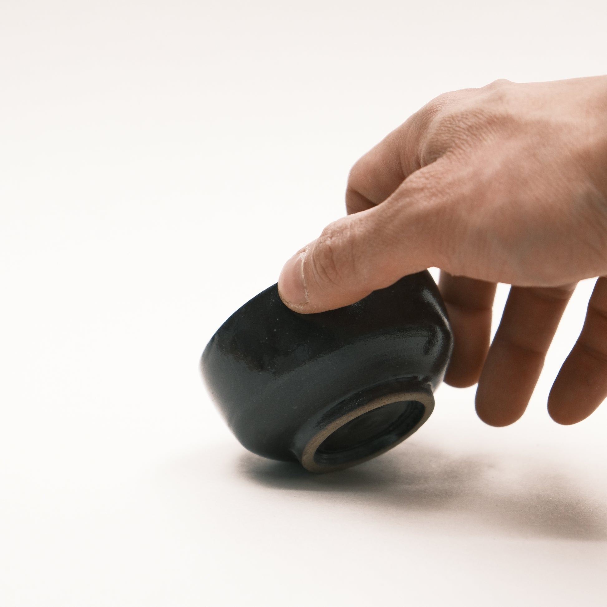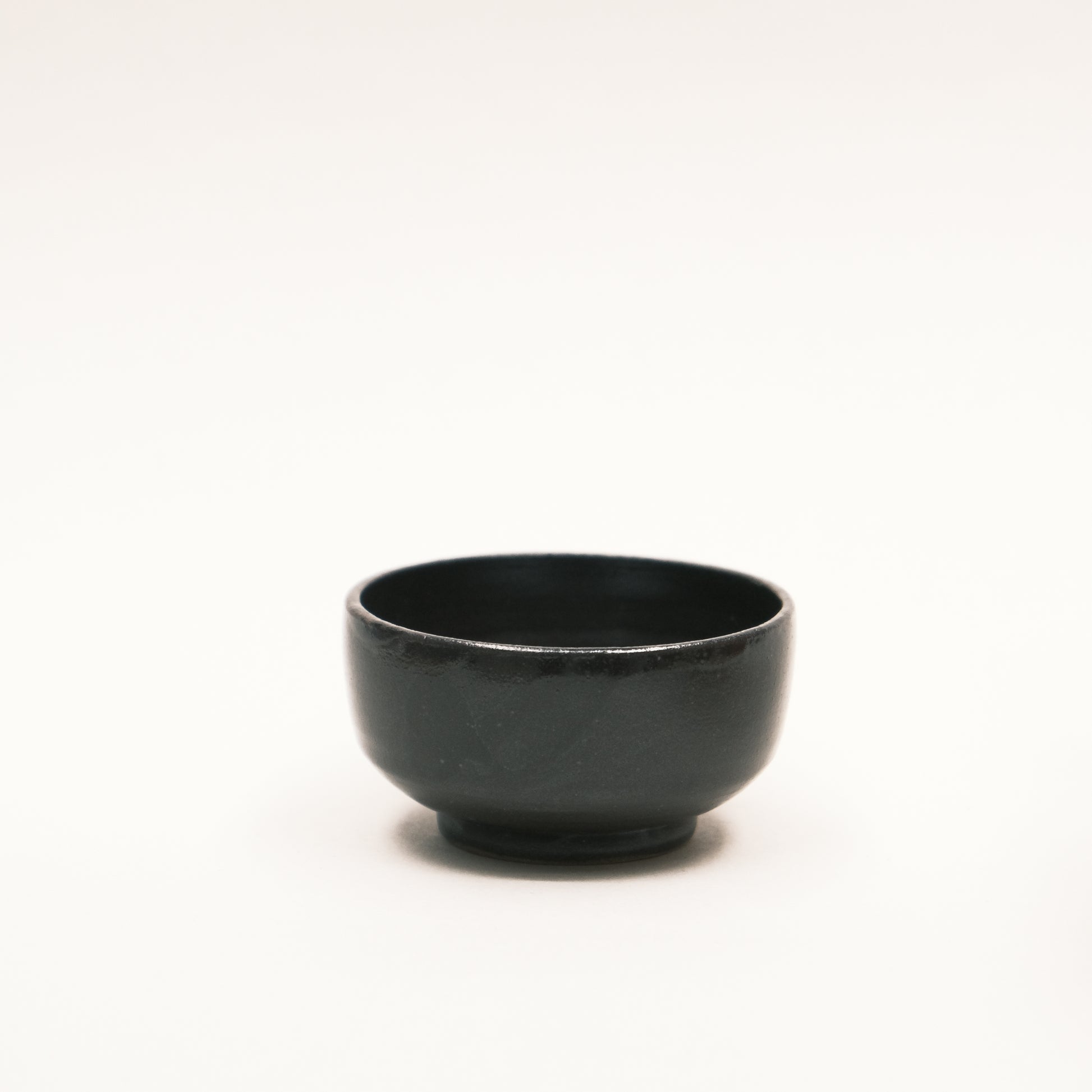 Black glaze, a touch of dark brown under the strong light.