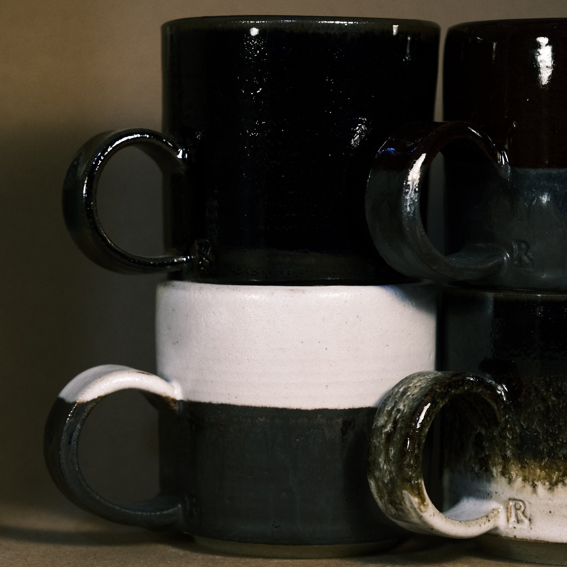 1. Glossy black glaze Mugs, hint of brown