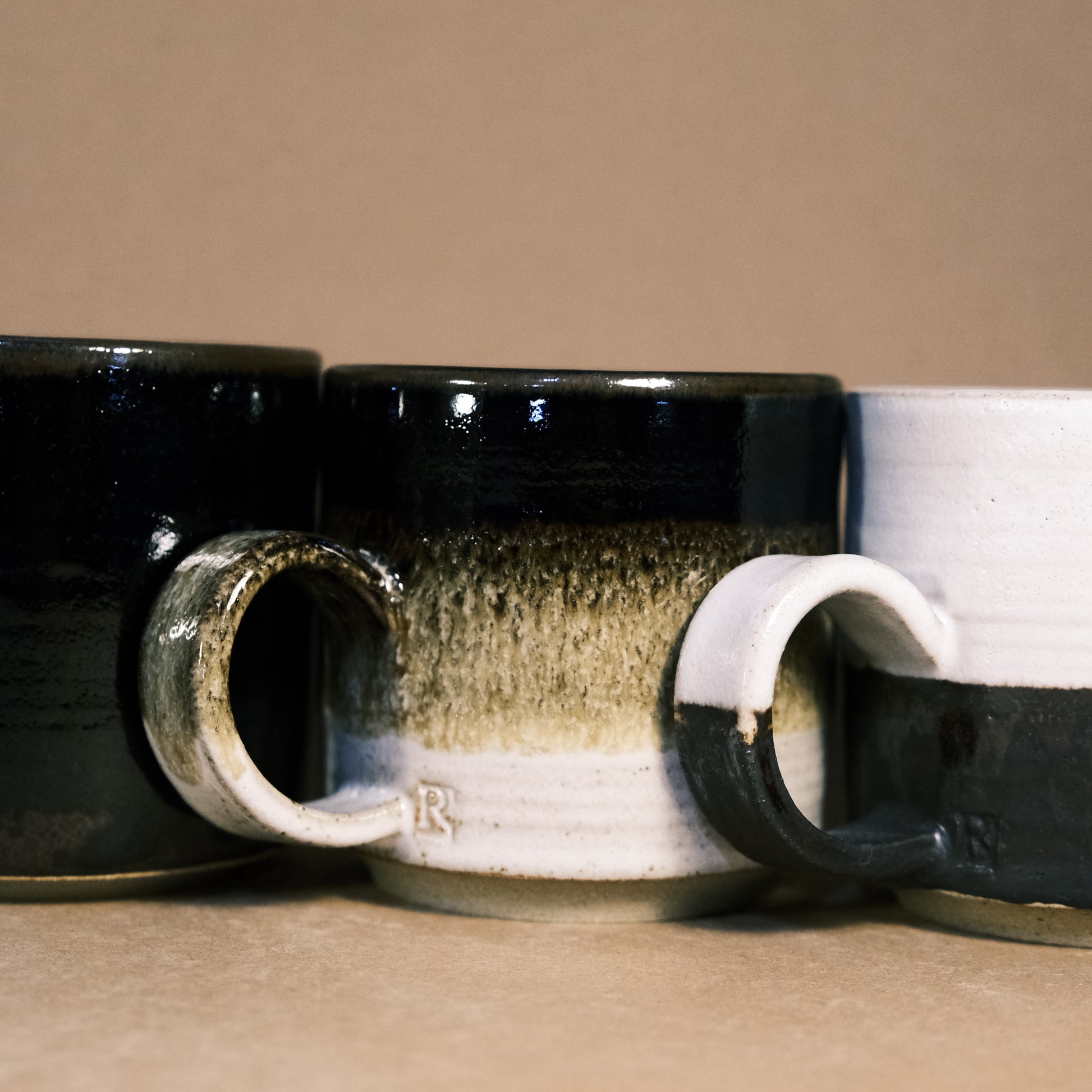 These stoneware mugs are individually thrown and turned on the wheel, then high-fired to 1250°C in an electric kiln.