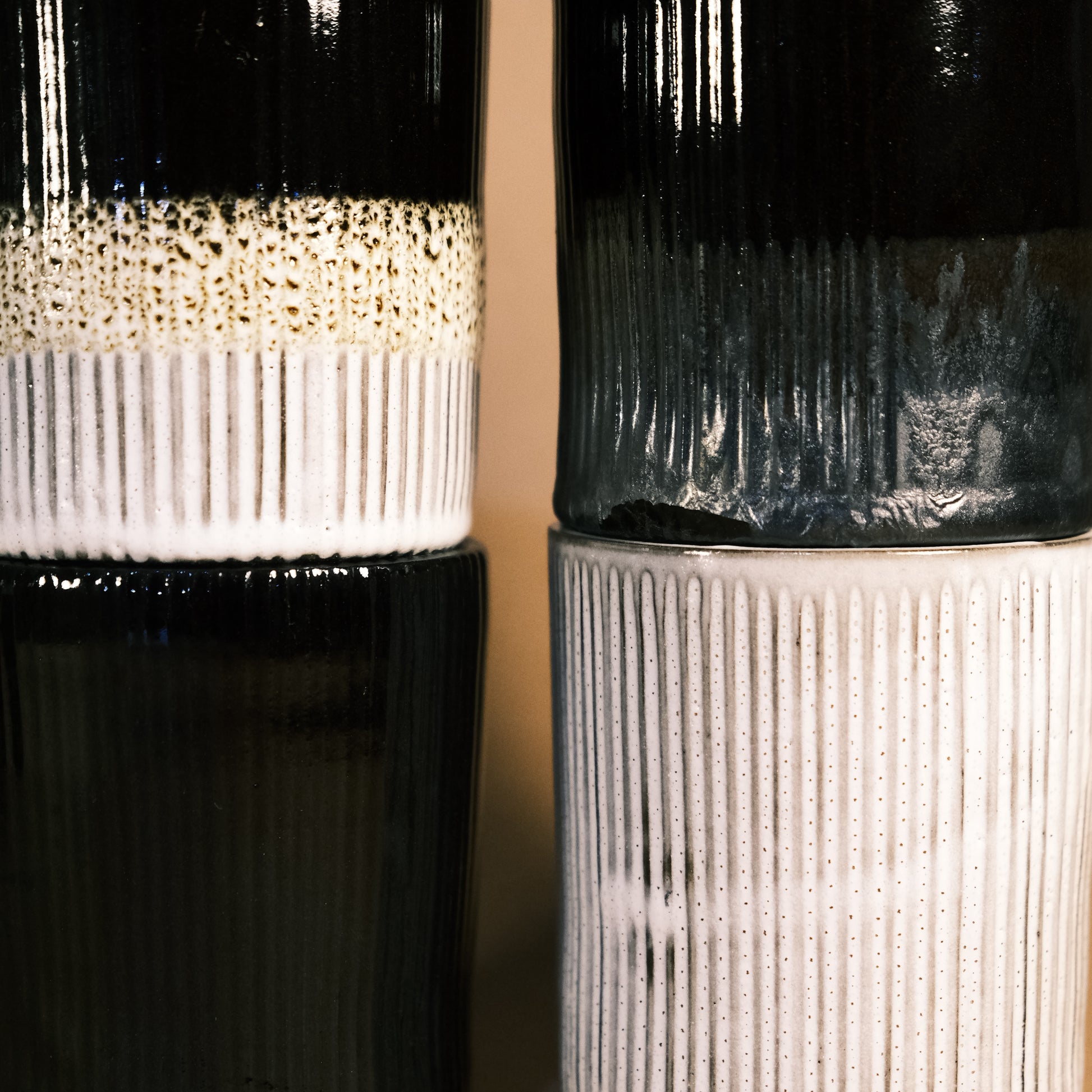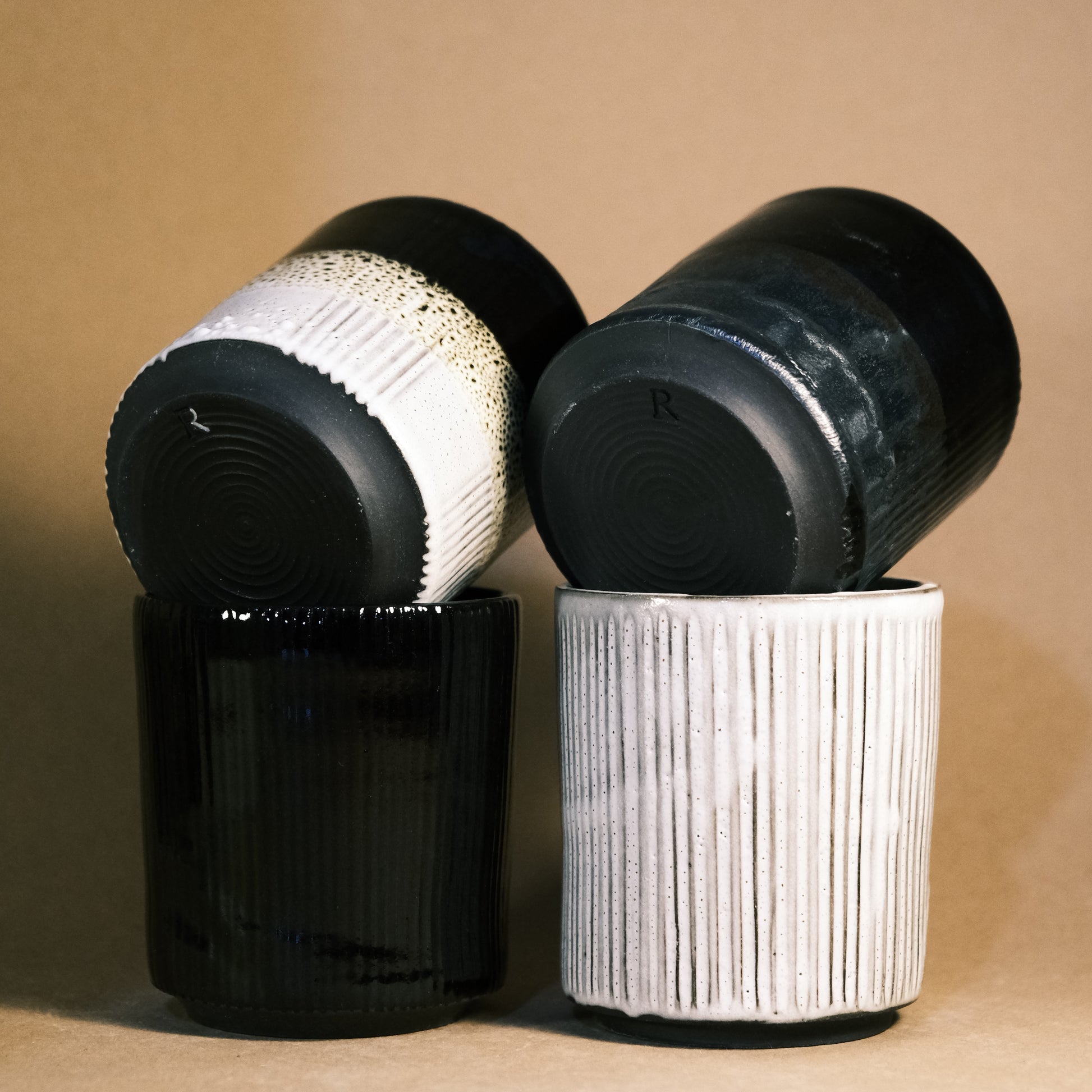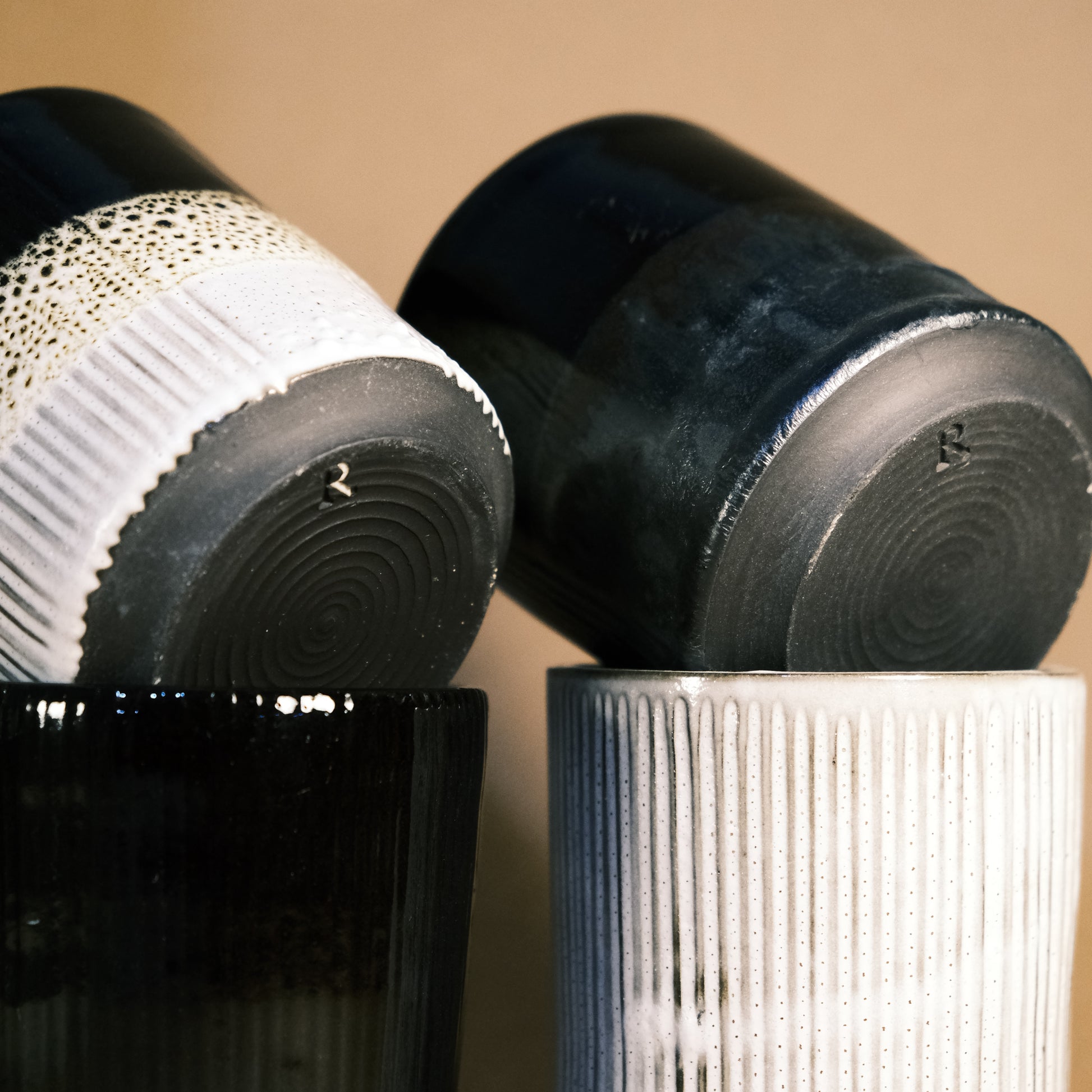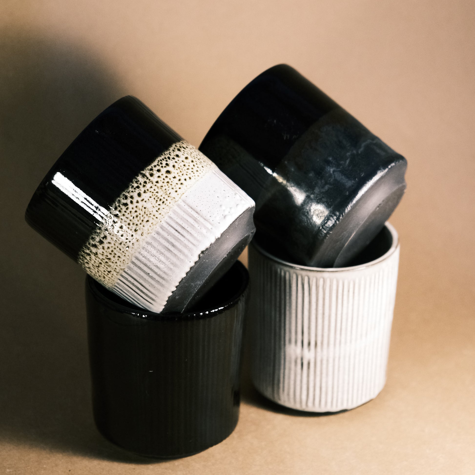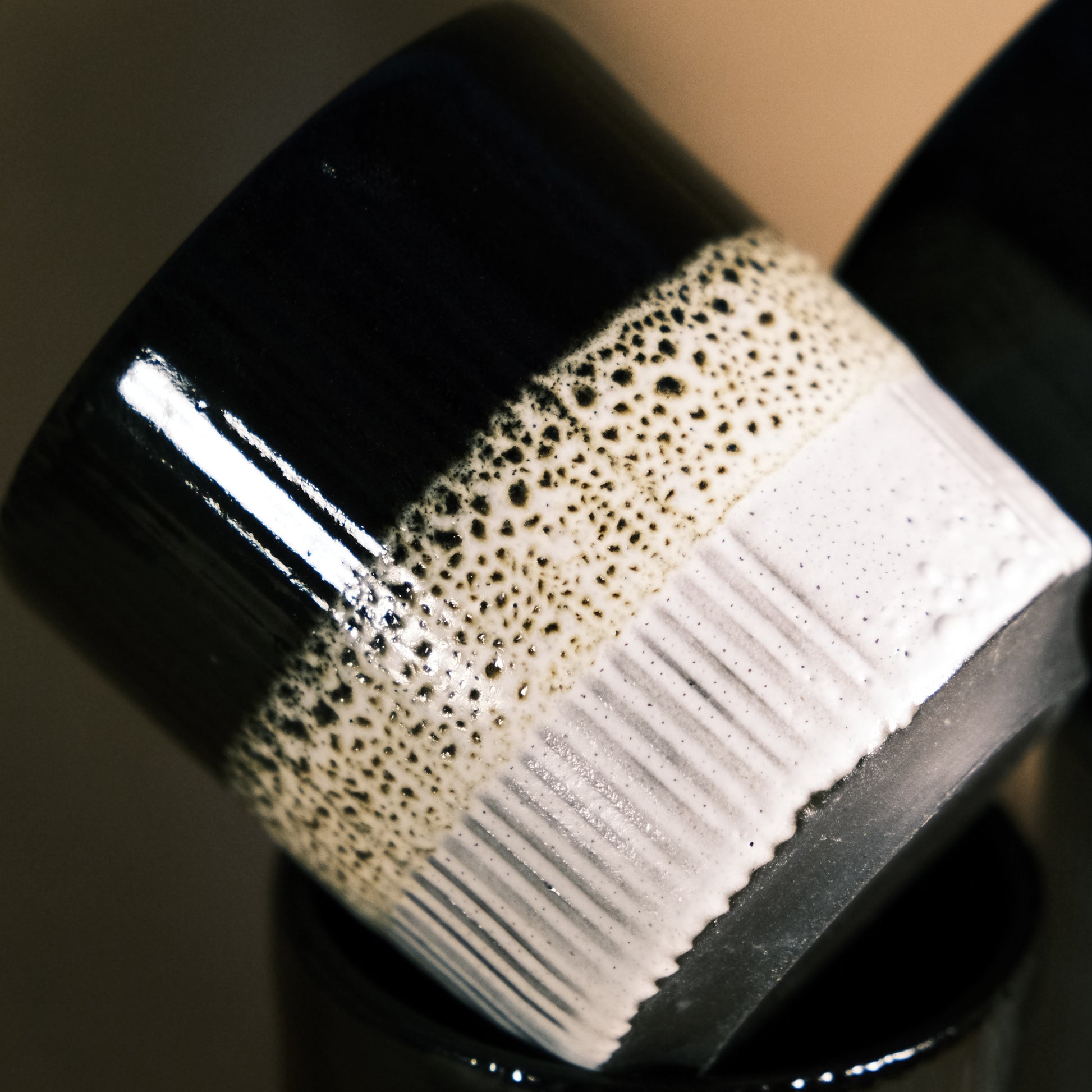 The interior of these tumblers is finished with a silk white glaze, while the exterior is left unglazed, allowing you to feel the authentic, fired black clay texture.