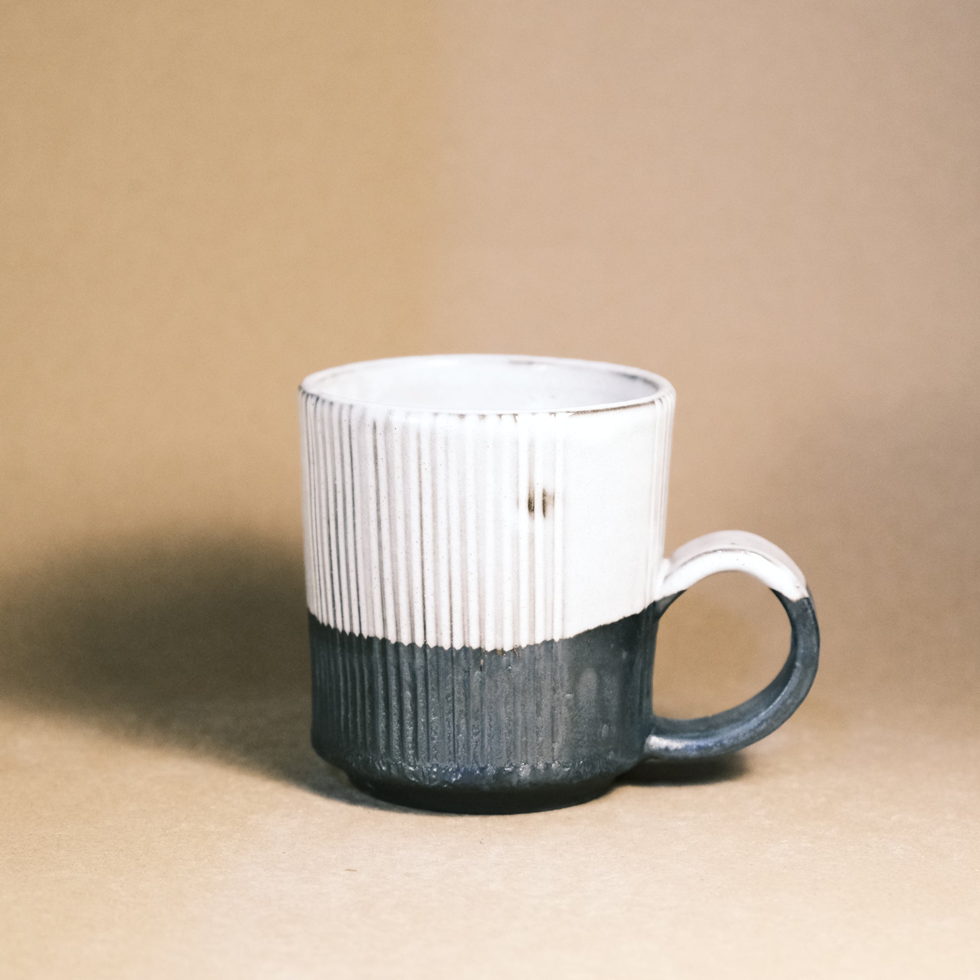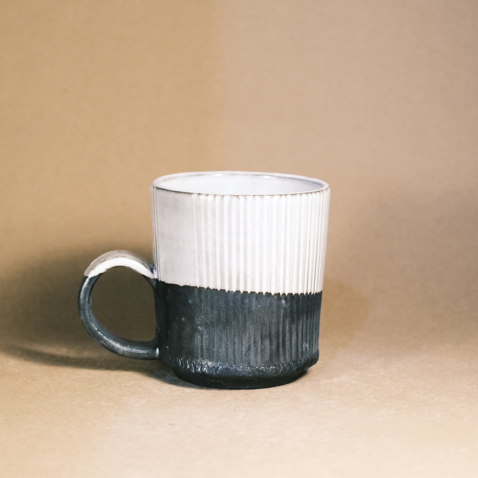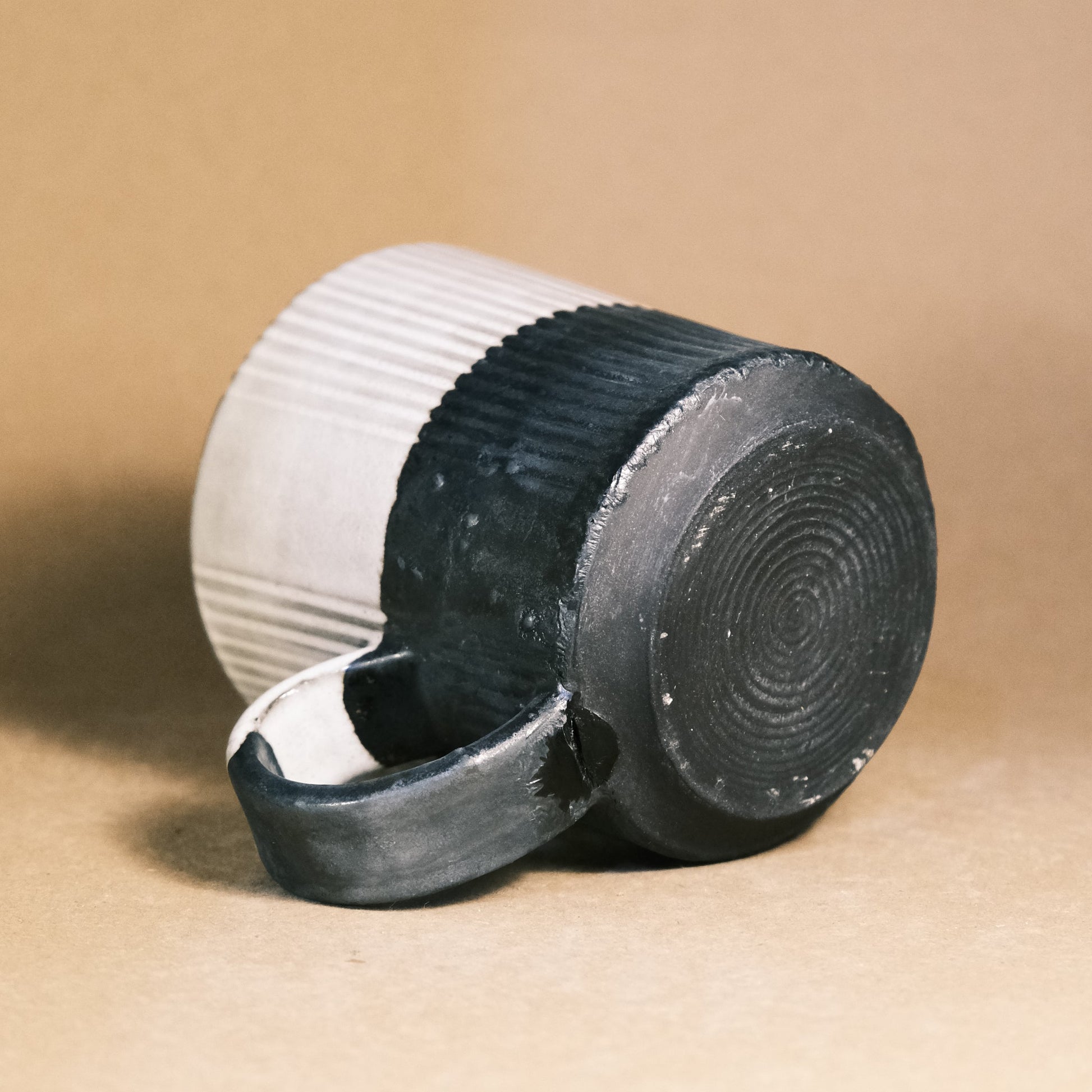 These black stoneware mugs are individually thrown and turned on the wheel, then high-fired to 1220°C in an electric kiln.